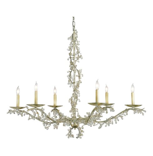 Sentimento Silver Leaf Crystal Rim 6 Light Chandelier