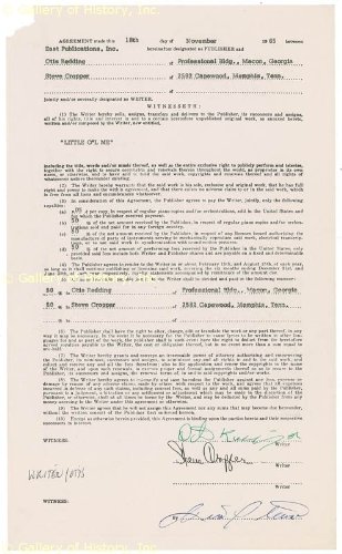 OTIS REDDING - DOCUMENT SIGNED 11/18/1965 CO-SIGNED BY: STEVE CROPPER