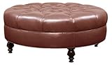 | ✚✚✚ Ives Upholstered Round Ottoman w/ Button Tufting The Ives large round tufted ottoman measures W48" round x H20.5" and is pictured with Bombay (coffee bean) decorative turned legs. Sturdy enough for use as a seating piece and elegant enough to double as a coffee table ottoman. This hand tufted fabric or leather upholstered bench is built in North Carolina and is available in 100 assorted fabrics, 20 leathers and two leg color choices! Price shown is for Tier 1 fabric color option.