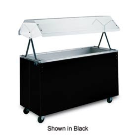 #60" Cold Food Station with Breath Guard Closed Storage - Granite Seamless one-piece 20 gauge 300 series stainless steel work surface. Stainless steel plate rest offers a wide, stable area - folds down for easy storage. Scratch resistant vinyl clad steel in rich black finish (standard). Storage base with doors available. Easy access, fully enclosed clear acrylic breath guard - 12" (30.5cm) clearance. Optional factory installed UL listed 120 volt incandescent lighting assembly showcases food in a dramatic light. Bulbs not included. Non-refrigerated 6" (15.2 cm) deep well. Foamed-in-place polyurethane foam insulation. 1" (2.54 cm) drain makes cleanup easy. 60"L x 24"W x 35"H Overall. 65.50 L. 50.00 W. 29.25 H.