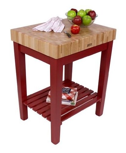 John Boos CU-CB3024 American Heritage Chef's Block Prep Table with Butcher Block Top Base Finish: Barn Red, Shelves: Not Included